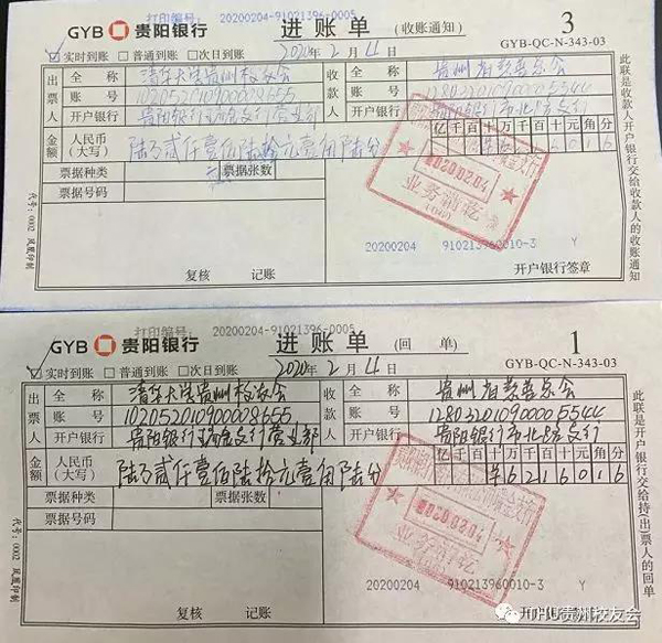 爱心款进账单