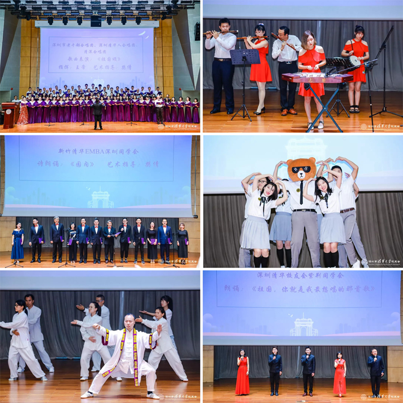 庆祝大会还安排了清华大学深圳国际研究生院学生艺术团及大学城艺术团乐器合奏、新竹清华EMBA深圳同学会诗朗诵、深圳清华博士后校友会歌曲串烧、深圳清华校友会武术协会太极功夫表演、深圳清华校友会紫荆同学会朗诵表演等环节。整个大会的气氛隆重、热烈并充满人文和艺术情怀。