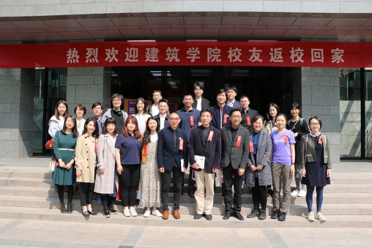 校友代表与建筑学院教师于建筑馆门口合影留念
