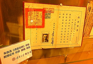 2017年11月1日上午,西南联合大学建校80周年纪念大会在北京大学举行。图为北京大学展出的朱自清的教授证书。光明图片/视觉中国