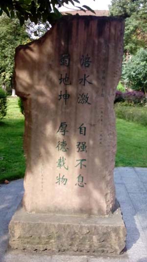 我们漫步在校园中,走过清华楼,来到西南科技大学特别为1965—1979年在此学习生活的清华大学师生修建的纪念园地,其中有一面纪念墙和一尊纪念碑,碑文上刻有“涪水激自强不息蜀地坤 厚德载物”。大家见到这个场景,非常兴奋,纷纷在此拍照留念,留住这值得回忆的时刻。