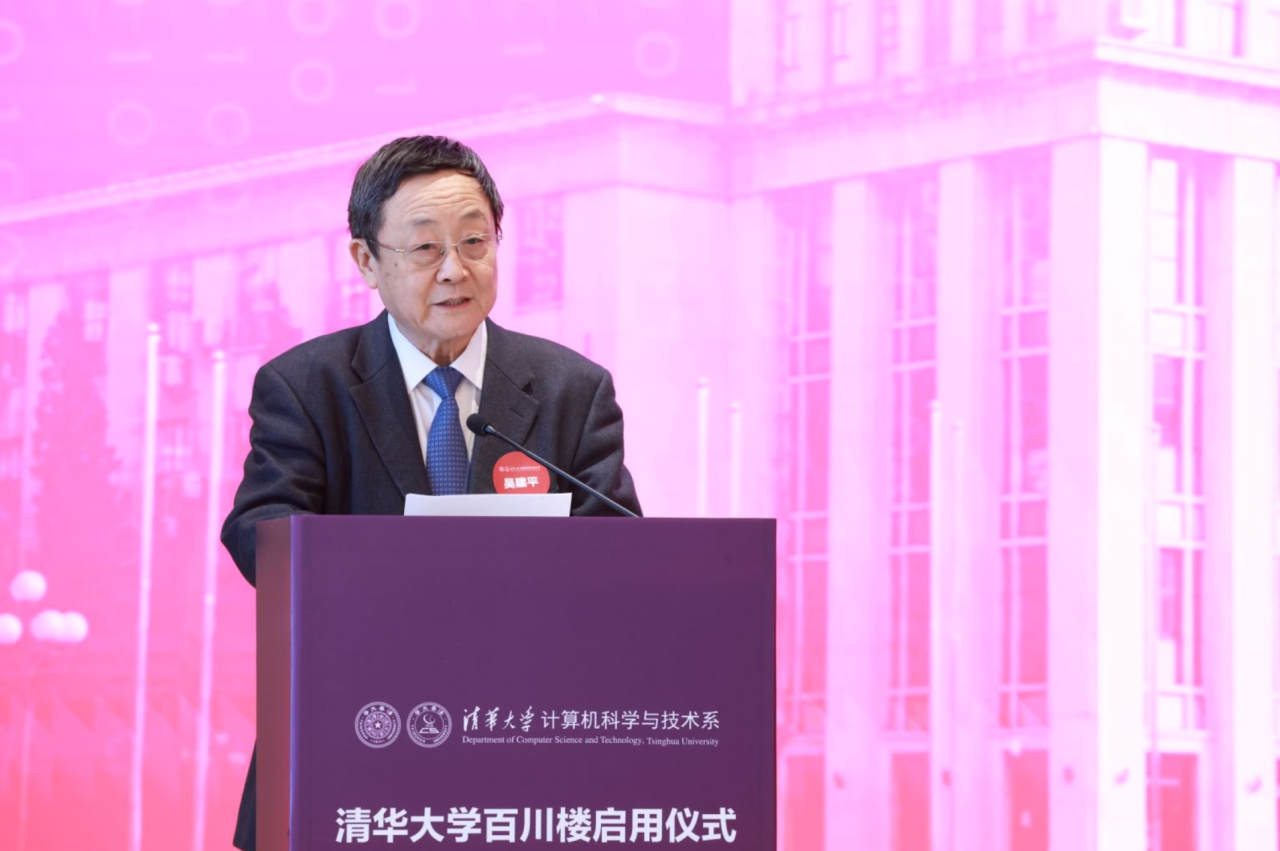 计算机系原主任吴建平院士结合计算机系发展历程介绍了百川楼的捐赠背景和建设过程,并表示,百川楼的启用为计算机系师生搭建起崭新的高质量学习和科研平台,为计算机学科高质量发展注入强劲动能。计算机系全体师生将凝心聚力、接续奋斗,稳步朝着建设世界顶尖人才培养基地、世界顶尖科学研究高地迈进,为建设教育强国、科技强国、人才强国贡献更大力量。