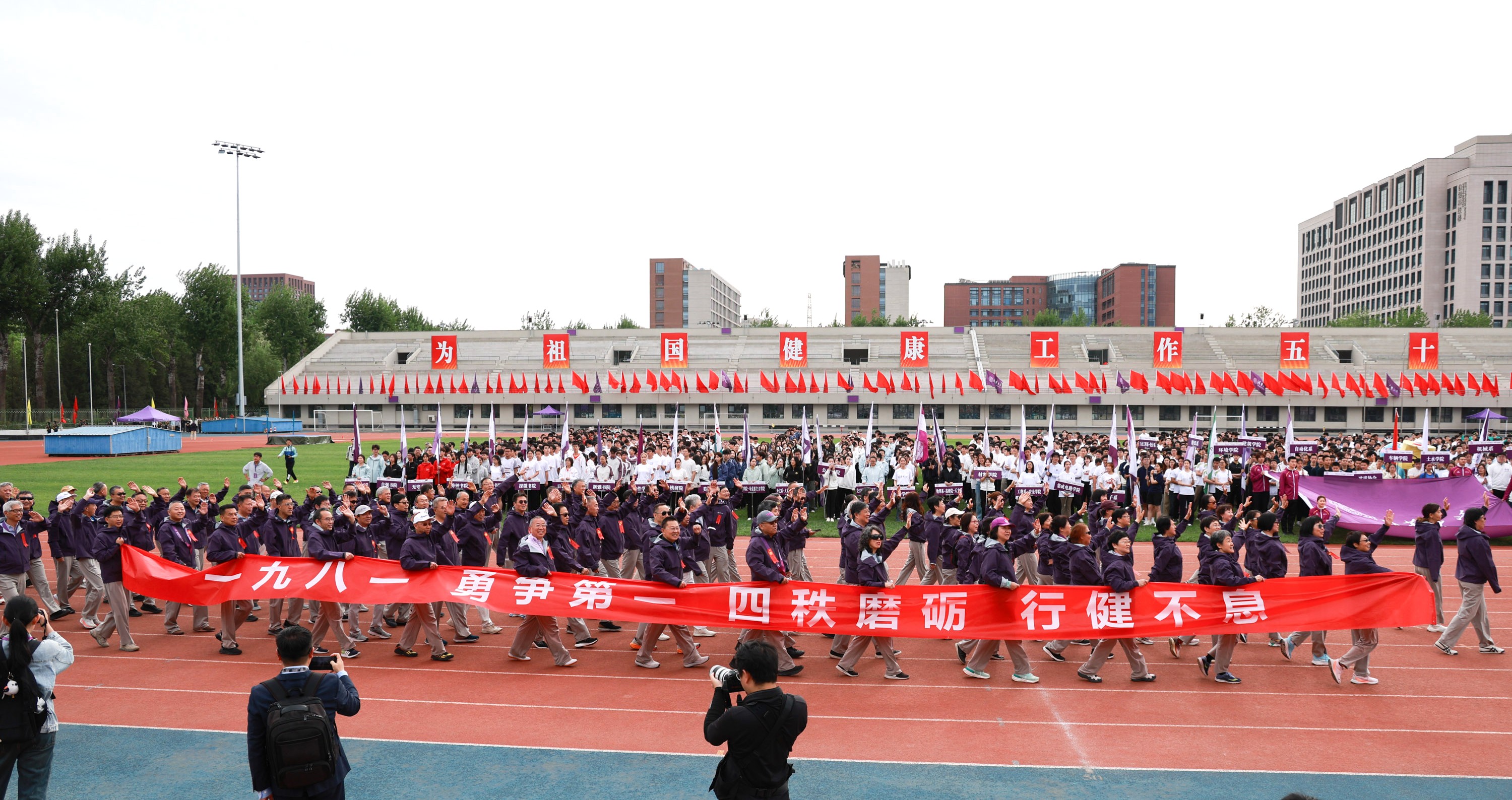 4月30日上午,清华大学第六十届马约翰杯学生田径运动会在东大操场开幕,在入场式中,583名校友组成的五个秩年校友方阵压轴出场,英姿飒爽地走过主席台。他....