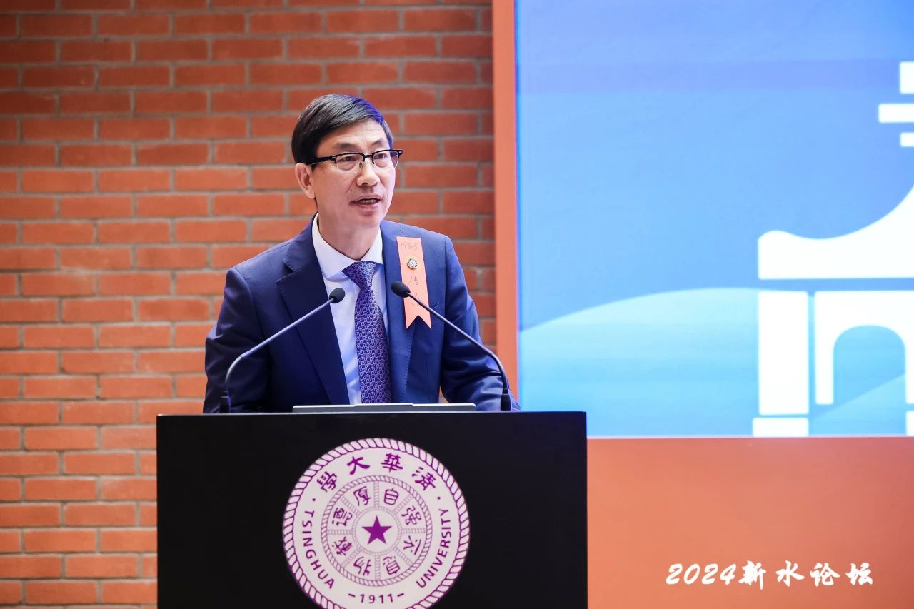 清华校友总会秘书长唐杰代表校友总会对本届新水论坛的召开表示祝贺,并介绍了全球校友组织开展工作的基本情况,以及校友总会凝聚、服务校友的五大举措。