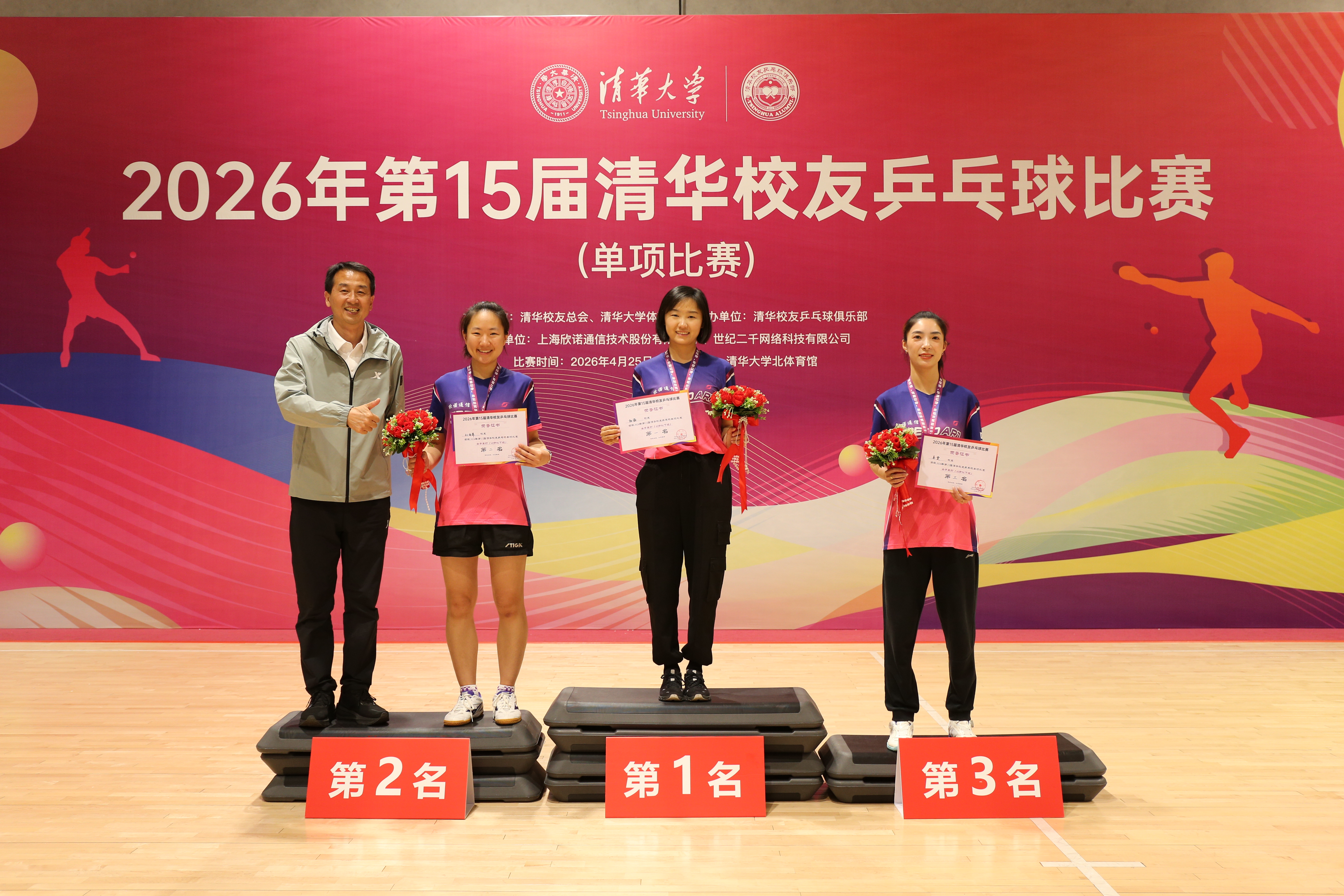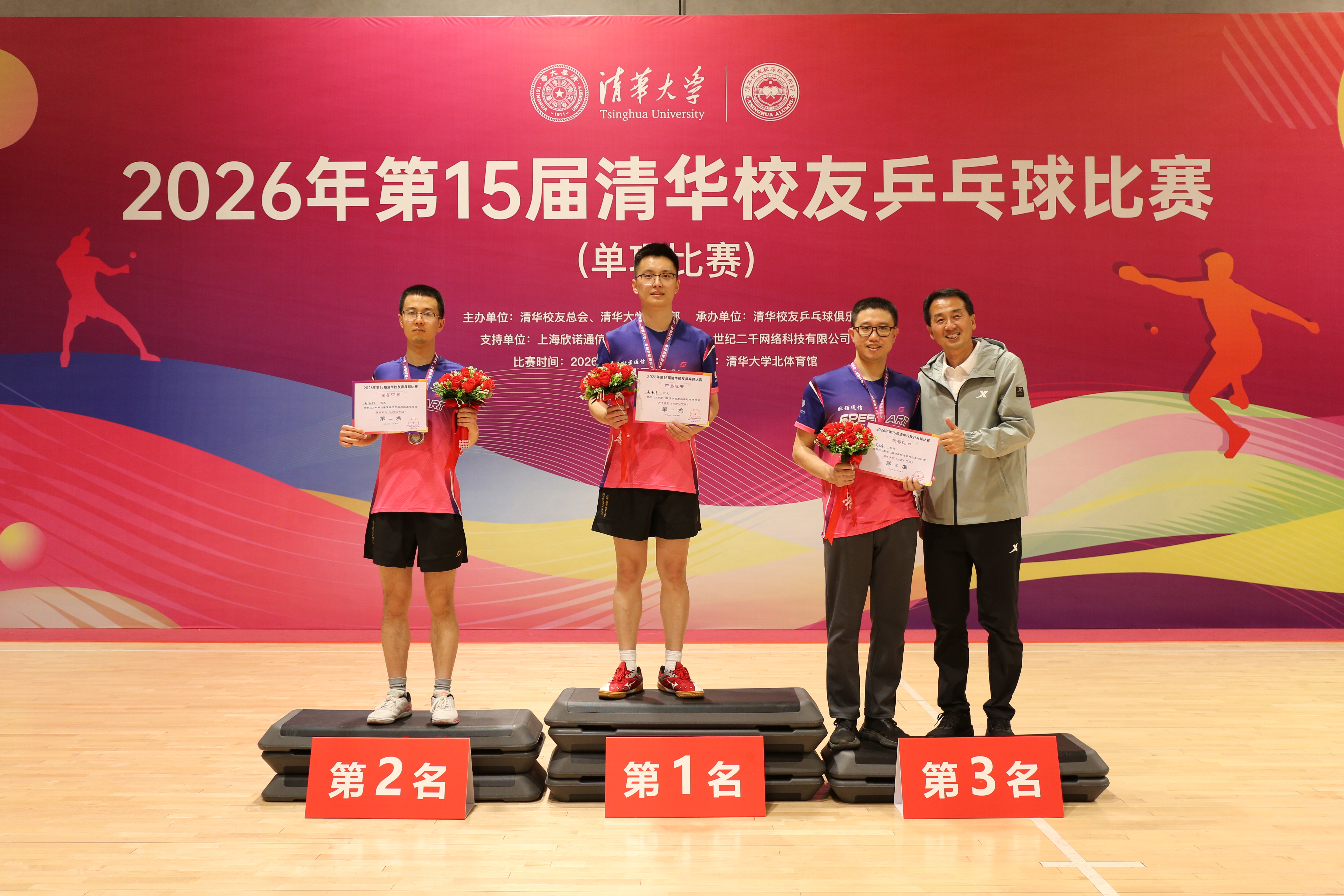 2024年4月27日,第十三届清华校友乒乓球比赛在北体育馆隆重举行,来自全国各地约200名爱好乒乓的校友参加了此次比赛,同贺母校113周年华诞!第十三届清华校友乒乓球单项比赛清华大学党委副书记过勇,清华校友总会秘书长、校友办主任唐杰,清华校友总会副秘书长陈伟强,乒乓球世界冠军、清华大学副教授刘国正,上海欣诺通信技术股份有限公司董事长谢虎校友出席了开幕式,与大家合影留念,并为比赛开球。第十...