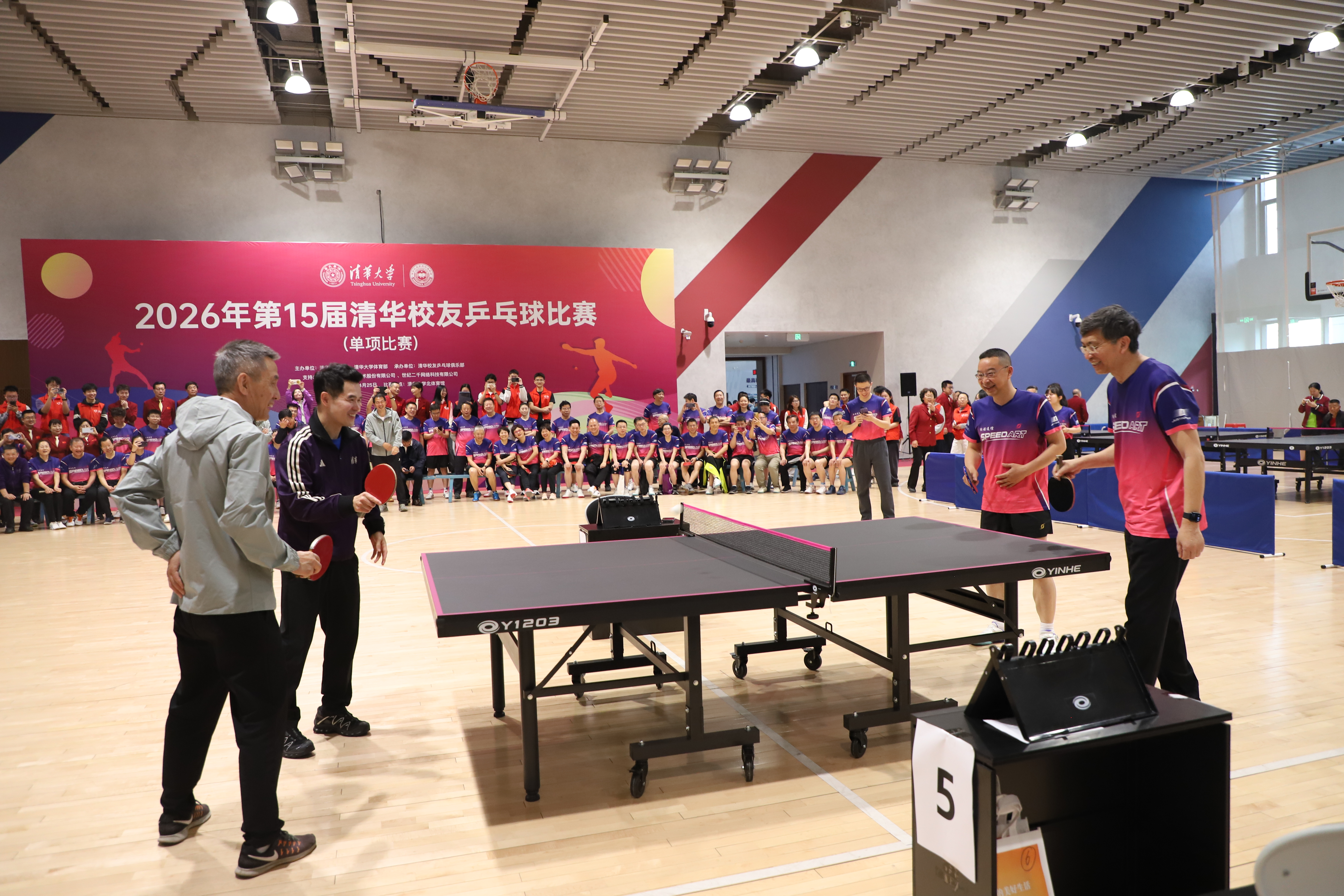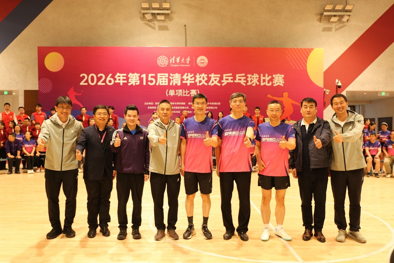紫荆花开桃李归,乒乓赛场共欢歌。4月26日,来自全国各地约200名爱好乒乓球运动的清华校友欢聚北体育馆,参加第十四届清华校友乒乓球比赛。校党委副书记、体育委员会主任过勇出席开幕式并宣布比赛开始。乒乓球世界冠军、清华校友乒乓球俱乐部理事会理事长邓亚萍在开幕式致辞中回顾了前十三届清华校友乒乓球比赛的情况,代表俱乐部对广大校友的积极参与表示感谢。过勇,清华校友总会秘书长赵劲松,邓亚萍,乒乓球世界冠军、清华...