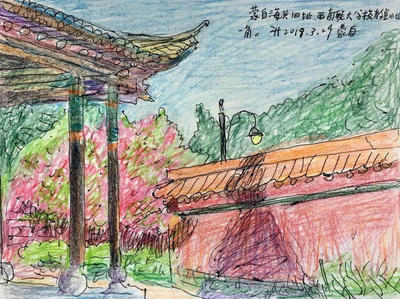西南联大后门内外旧址今貌-彩铅-2019年3月28日昆明