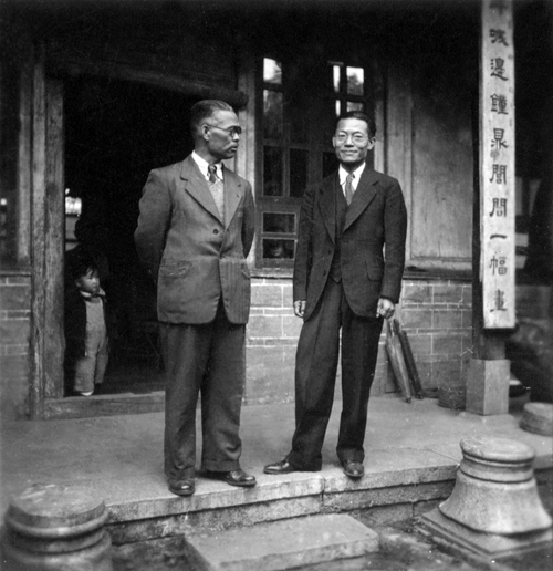 张奚若和钱端升在昆明唐家花园张伯伯家,门内站着我弟弟钱召南