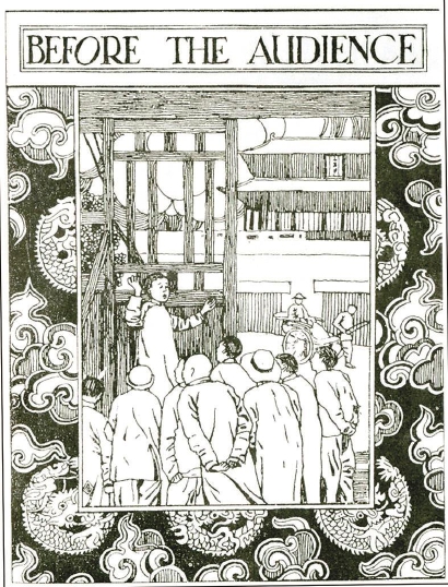 1921年闻一多担任《清华年刊》美术编辑期间创作的插画,图片上方是“BEFORE THE AUDIENCE”(面对听众)
