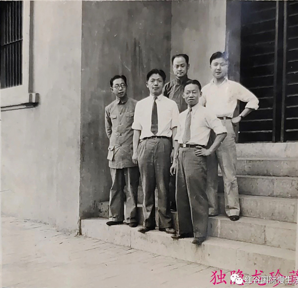 摄于广西民族学校,右一为张培刚(后为发展经济学鼻祖),右二为徐义生,右三为社会所芮逸夫,右四为社会所千家驹,右五为广西地方官员,右六为社会所所长陶孟和,右七为陶夫人,沈性仁,右八为张××