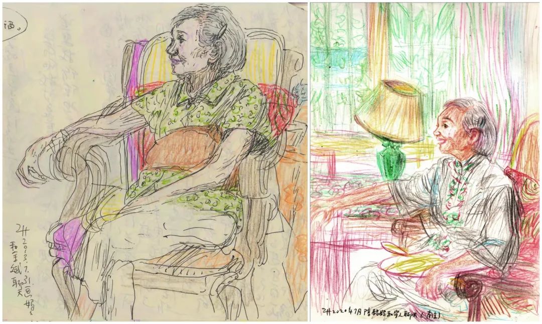 这些年妈妈婉拒了不少访客,也接纳了她还喜欢乐意配合的,比如西南联大博物馆龙美光一行专程来录口述历史、徐蓓导演的电视片《西南联大》《九零后》、现代文学馆计蕾专访老作家等,这些我都有幸画下了。