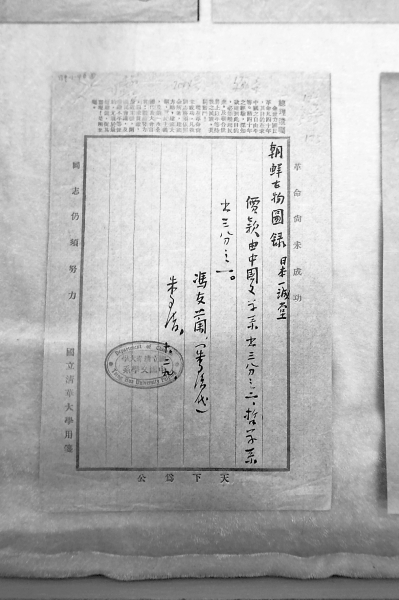 其中最珍贵的一张是朱自清与冯友兰共同签名的清单:中文系与哲学系合买了日本一诚堂的《朝鲜古物图录》。清单上这样写:“价款由中国文学系出三分之二,哲学系出三分之一。”签名为冯友兰、朱自清。冯友兰1928年应邀至清华大学哲学系。1929年起任清华哲学系主任,1931年任清华文学院院长。