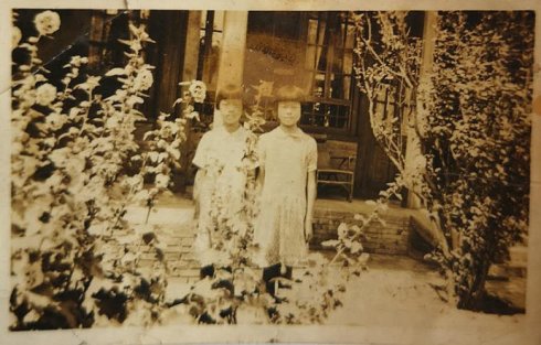 抗战前,母亲郑晏(左)与她姐姐郑雯在小酱坊胡同的家中