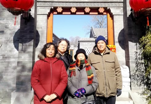2018年春节,我们全家在圆明园聚会时留影。左起:作者本人、姐姐黄坤、母亲郑晏、弟弟黄圻