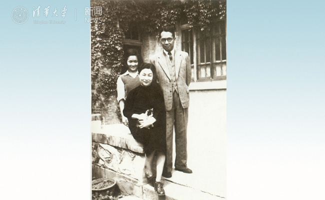 1950年清华大学校庆日,杨绛、钱钟书与女儿钱瑗摄于新林院寓所。校史馆 供图