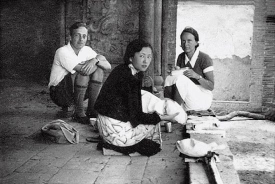 1934年8月,林徽因与费正清(左)、费慰梅(右)在山西