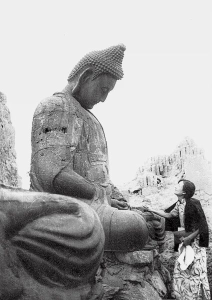 1934年夏,林徽因在山西汾阳县小相村灵岩寺考察时于佛像前留影