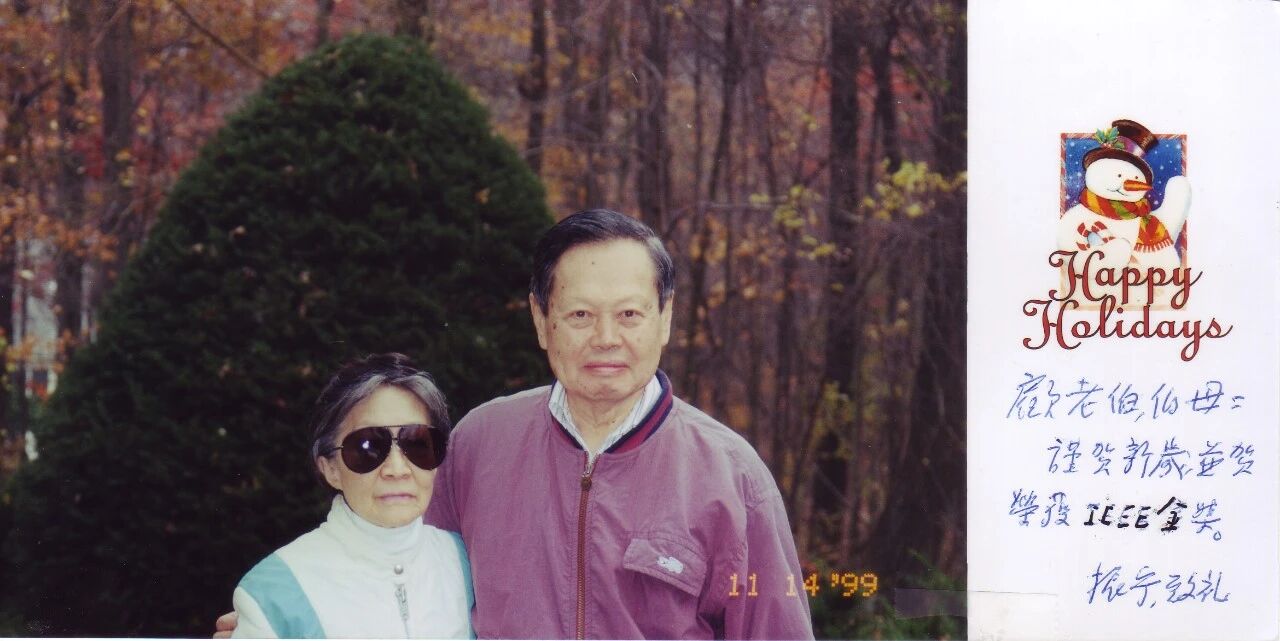 杨振宁虽早已名满天下,但对我祖父的科学成就仍然十分敬重。2000年初,他寄来一张印有他与夫人杜致礼合影的贺卡,写道: