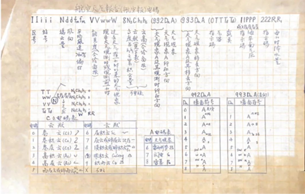 章淹的航空天气报告(航空报)电码手迹 来源丨中国气象报社