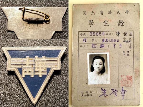 就在我希望能够找到更多证据时,一位出身于清华世家的1981级校友为我提供了两件关键的证据:一枚蓝底白字的三角形“清华”徽章和一张1949级的“国立清华大学学生证”。这两件珍贵的文物同属于1949级农学院“陈恬生”学长,在经历了长达70年的无数曲折之后,终于浮出水面,为还原清华历史上的一段史实提供了确凿的佐证。这枚徽章背面刻有 “38850”的序号,而学生证上明白无误地注明了持证人的学号:38850。这就构成了一个完整的“证据链”,充分证明了清华在抗战复员后重制的校徽章就是蓝底白字的三角形“清华”徽章,而且徽章的序号就是持章人的学号。