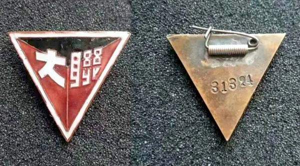 问题是,当时制作的徽章是什么款式呢?这一点校史中并没有明确记载。但结合清华校徽演变历史的逻辑推断,我们可以确定,这一款校徽章是三角形的。至于图案,从现存的三角形清华徽章实物中,发现有一款蓝底白字的“清华”徽章,背后刻有“36617”的序号,这应该是“民国36年”(1947年)第617号校徽的意思。从徽章制式、字体风格、材料质地等细节综合分析,这款徽章就是清华在抗战复员后重制校徽章的可能性极大。