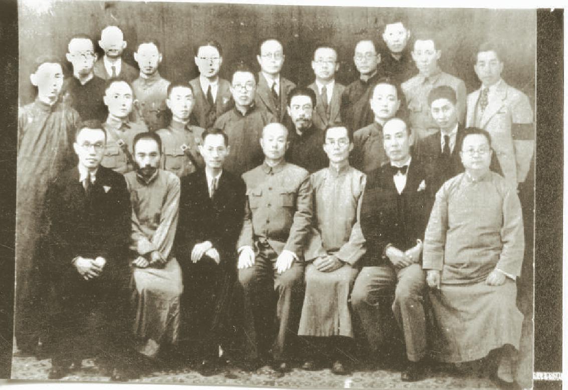 1938年4月,梅贻琦(前排左五)、蒋梦麟(前排左三)与湘黔滇旅行团师生代表及护送军官合影