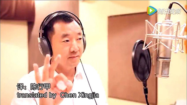 陈行甲在深圳办公室为“联爱工程”录制宣传视频。澎湃新闻记者 王乐 摄