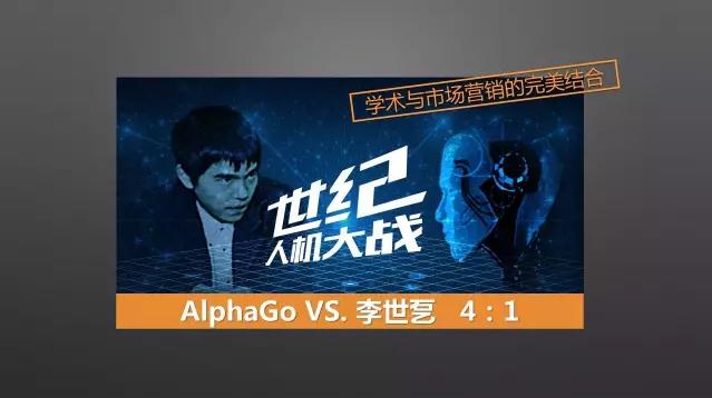 今天我更多想给大家分享我背后看到的关于有趣人性的东西。之前的嘉宾们讲了很多学术,学术跟企业的碰撞,最后讲一个交接点,一个大的趋势以外,还有一个人在里面扮演什么样的角色,找到自己的定位。所以我今天选了这么一个题目。这个题目中间第一件事情就是4:1的比分,每个人都已经看到了,而我对它的理解,先用一个词,它是一个学术与市场营销的完美的结合,特别是在东方,全中国人我估计95%都知道这样一场比赛,而且彻底颠覆了我们对技术、对人工智能的理解。